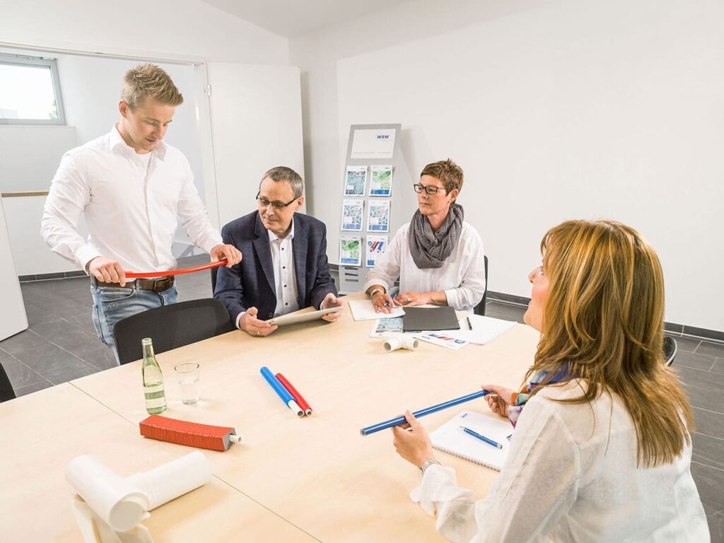 At WRW Pipes GmbH, we offer comprehensive services that go beyond the production of high-quality products. Our service package includes the customized development and refinement of our pipe systems to meet your specific requirements precisely. Whether it’s adjusting ring and rod lengths, the color of the pipe coating, or nominal widths, we ensure our products integrate seamlessly into your processes. Additionally, we offer individual packaging solutions per pallet to optimize your logistics.